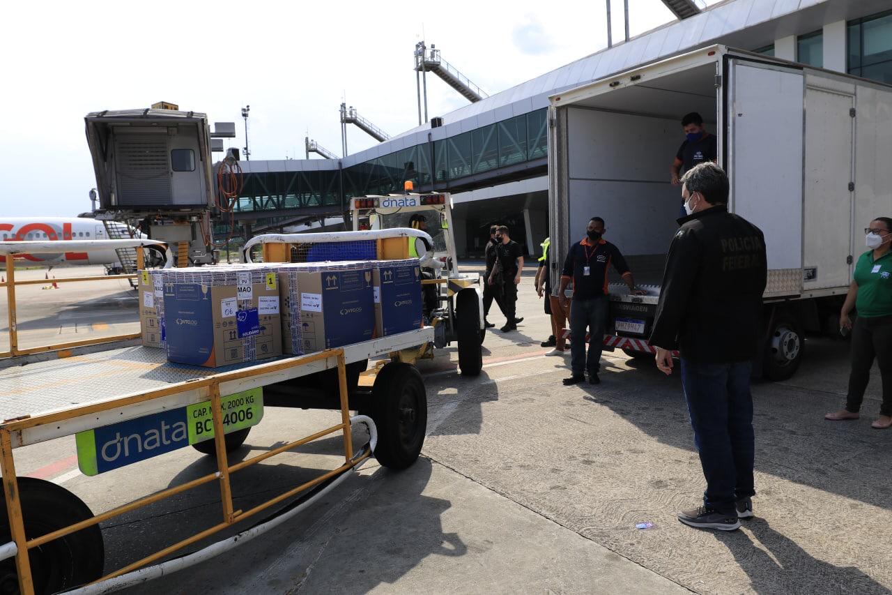 As vacinas foram transportadas em avião comercial da empresa Latam e desembarcadas no Aeroporto Internacional Eduardo Gomes, por volta das 14h35. Após o desembarque, a remessa foi escoltada pela Polícia Federal para armazenamento na Fundação Hospitalar de Hematologia e Hemoterapia do Amazonas (Hemoam), local que oferece acondicionamento da vacina em freezer científico, com temperaturas a -86ºC.
