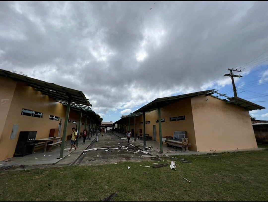 Parte do telhado da escola foi lançado para todos os lados e também para a área externa do educandário.