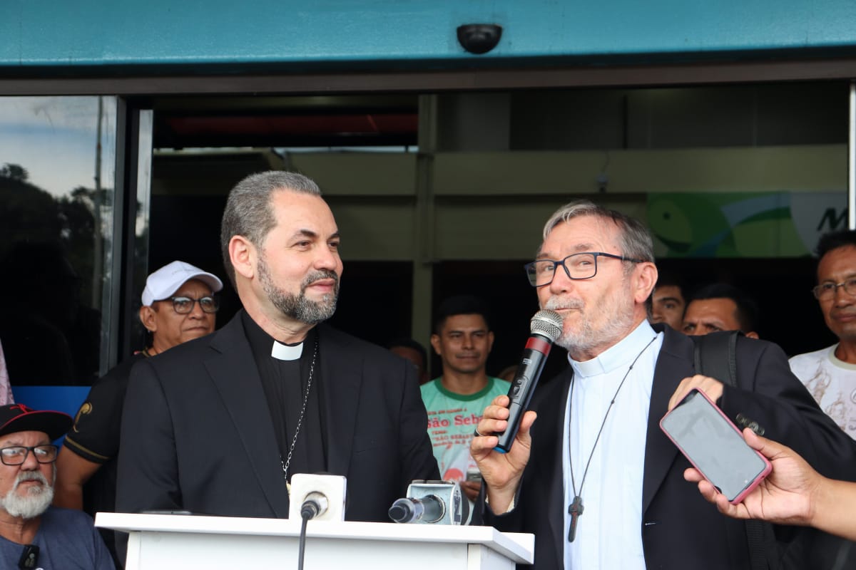 Por volta das 15h40, o novo bispo da Diocese de Parintins, Dom José Albuquerque de Araújo, acompanhado do bispo emérito, Dom Giuliano Frigeni, pisou em solo parintinense. Desde o anúncio de sua eleição, em 21 de dezembro do ano passado, durou 50 dias para que tivesse contato com o seu rebanho.