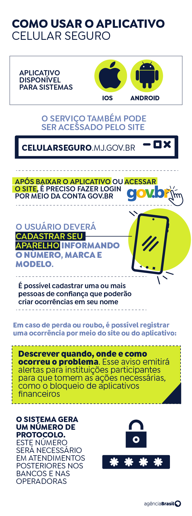 O aplicativo para sistemas Android e IOS estará disponível a partir desta quarta-feira (20), mas o serviço já pode ser acessado pelo site Celular Seguro do Ministério da Justiça e Segurança Pública.
