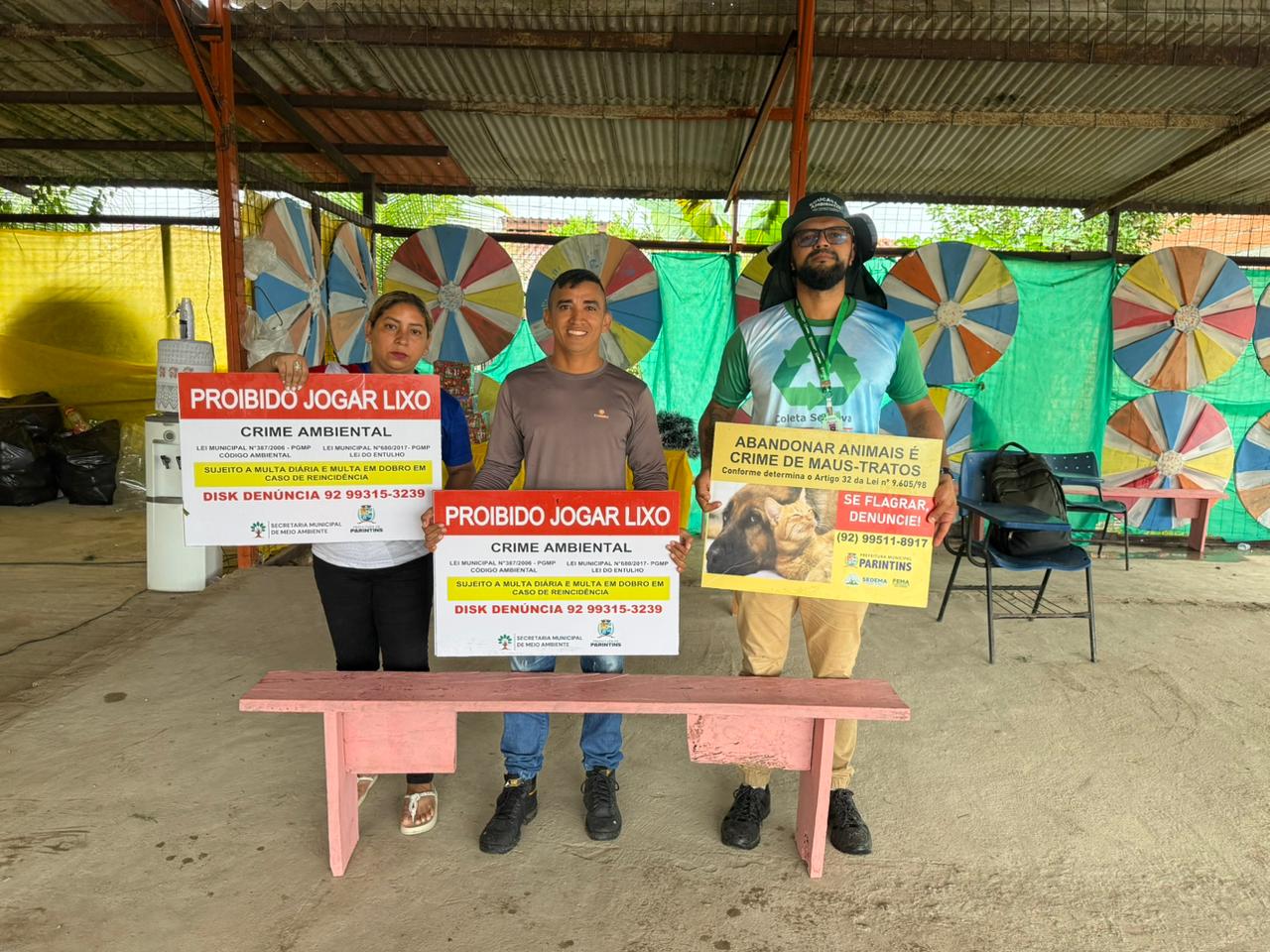 A Prefeitura de Parintins, por meio da Secretaria Municipal de Desenvolvimento Sustentável e Meio Ambiente (SEDEMA), realizou na manhã desta sexta-feira (19) uma ação de Sensibilização Ambiental porta a porta no Residencial Vila Cristina. A atividade marcou a última ação ambiental de 2025. A iniciativa teve como objetivo conscientizar os moradores sobre a importância dos cuidados com o meio ambiente, abordando temas como o combate às lixeiras viciadas, prevenção às queimadas, a coleta seletiva e o enfrentamento aos maus-tratos e abandono de animais.