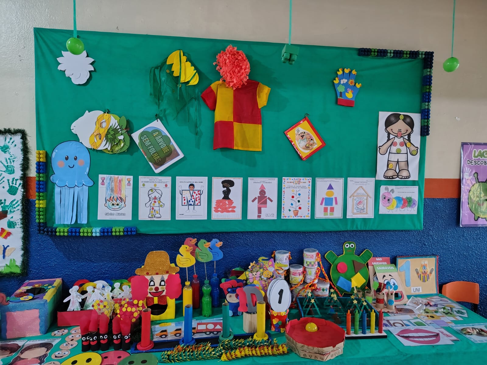 O Salão do Centro Infantil recebeu a exposição de painéis, organizados e orientados pelos professores e trabalhados pelos alunos, com materiais e produções vivenciadas nas salas de referências, respeitando a organização pedagógica por faixa etária e as particularidades de cada etapa.