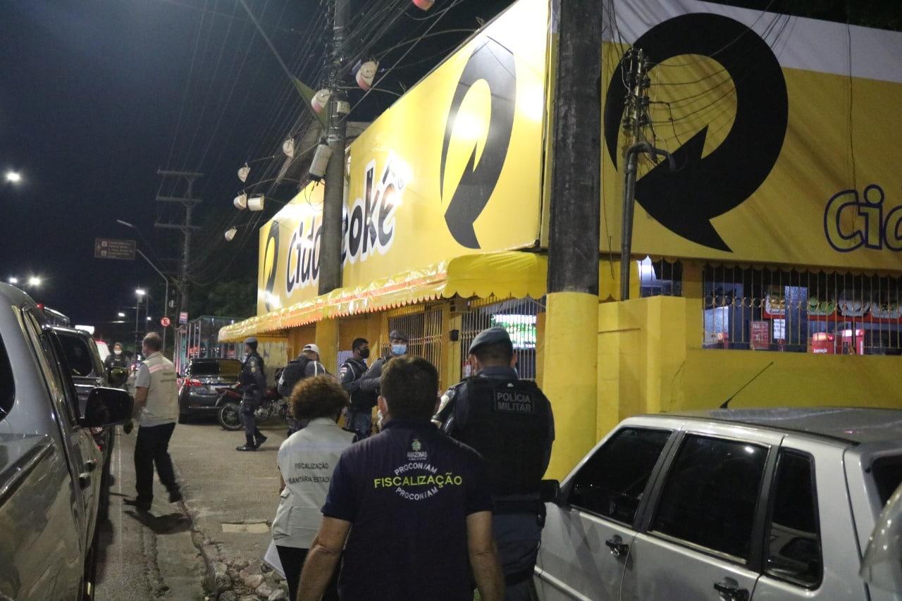 O Cidadeokê, localizado na avenida Torquato Tapajós, bairro da Paz, zona centro-oeste de Manaus, foi autuado pela Visa Manaus por estar promovendo aglomeração, no momento da chegada dos fiscais, além de estar funcionando fora do horário permitido.