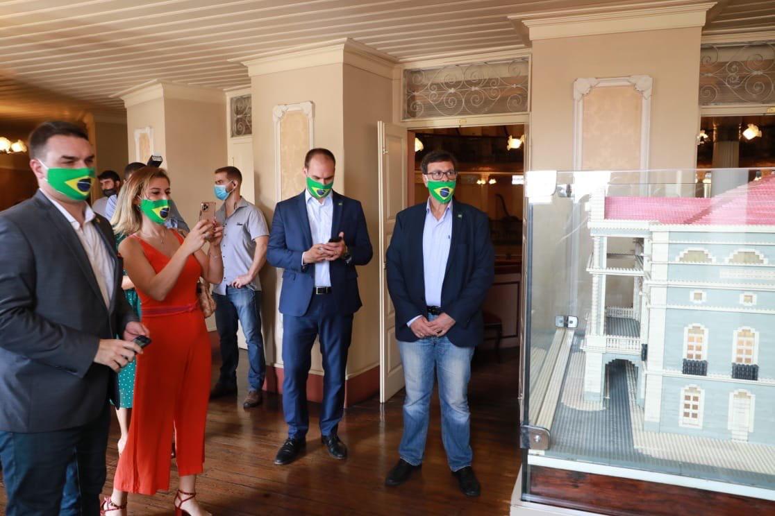 Uma comitiva liderada pelo diretor-presidente da Agência Brasileira de Promoção Internacional do Turismo (Embratur), Gilson Machado Neto, visitou o Teatro Amazonas (avenida Eduardo Ribeiro, Centro), na manhã desta sexta-feira (18/09). Os filhos do presidente Jair Bolsonaro, o senador Flávio Bolsonaro e o deputado federal Eduardo Bolsonaro, acompanhados de suas esposas, também visitaram o patrimônio histórico.