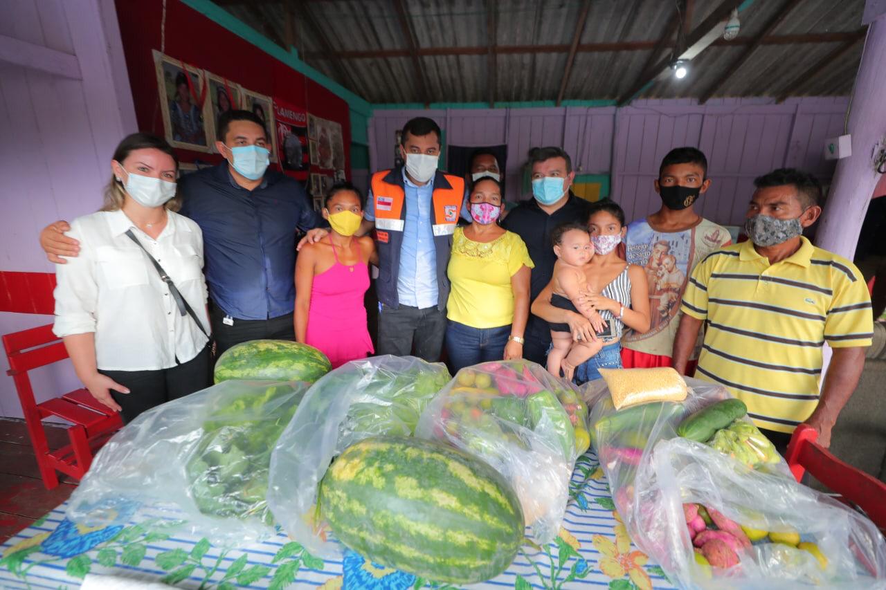 O governador também acompanhou a entrega de cestas de produtos regionais da ADS para uma família em situação de vulnerabilidade social.