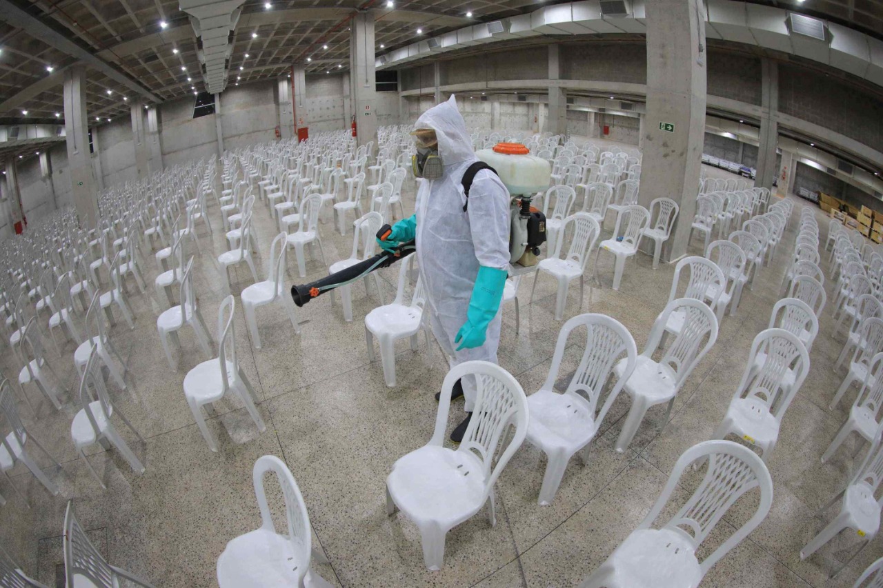 O Governo do Amazonas, após intensa jornada no novo Centro de Testagem contra a Covid-19 iniciada na quarta-feira (19/01), realizou sanitização nas etapas 1 e 2 do Centro de Convenções do Amazonas Vasco Vasques (CCAVV). O novo espaço conta com 20 postos de coleta, área de triagem e atendimento médico para pessoas que testaram positivo para a doença.