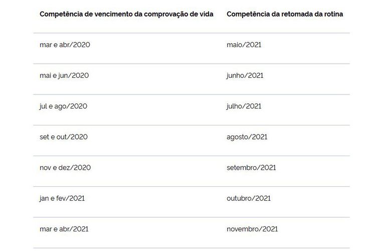 O procedimento deve ser feito a cada ano para que o pagamento do benefício do INSS não seja bloqueado. Desde março de 2020, entretanto, os bloqueios foram suspensos em decorrência da pandemia de covid-19, que prejudicou a realização da prova de vida de modo presencial.