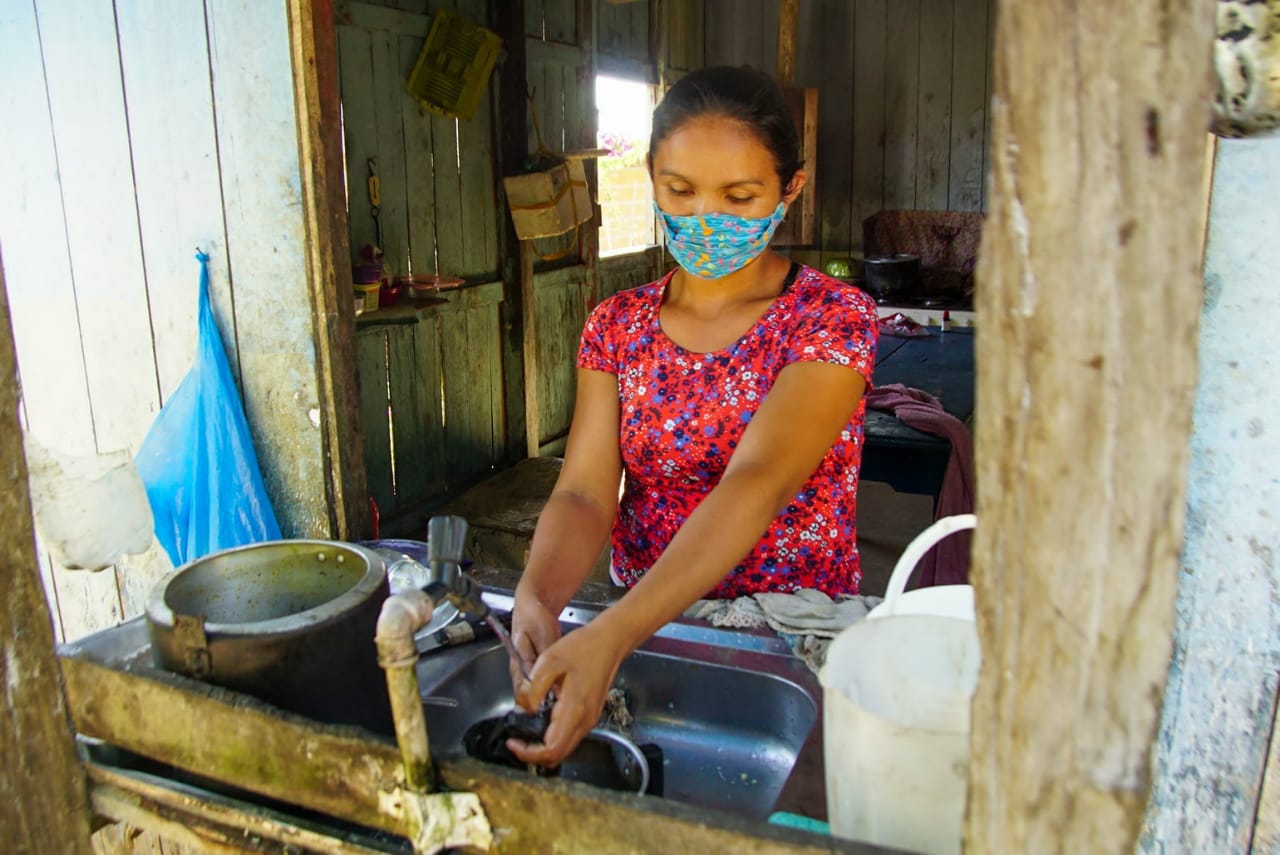"Antes para ter água tinha que pegar lá na beira, era muito difícil porque não tinha água na torneira. Eu tinha que colocar água no balde e levar na cabeça pra casa para ter água para tomar e fazer comida", relata a comunitária.