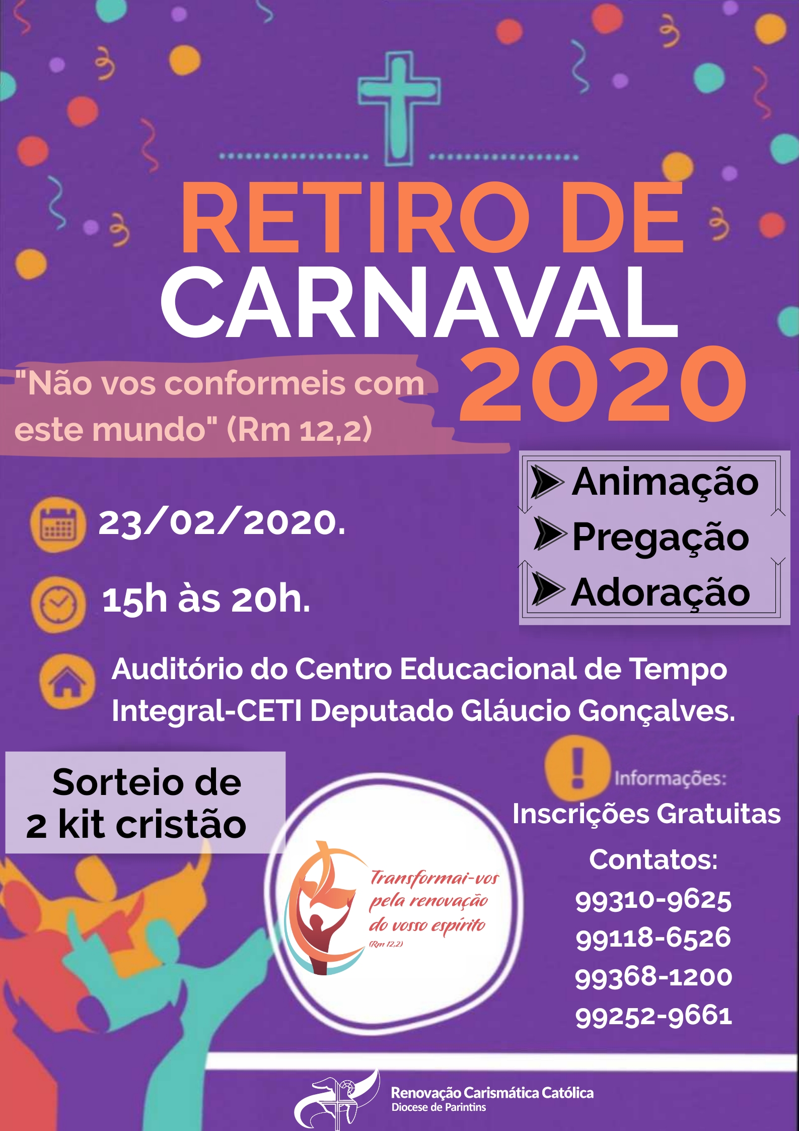 O movimento Renovação Carismática Católica (RCC) da Diocese de Parintins, realiza no próximo domingo, 23, a partir das 15h30min, o Encontro de Carnaval com o objetivo de oferecer ao povo católico e a comunidade parintinense uma opção de diversão, alegria e escuta da palavra de Deus.
