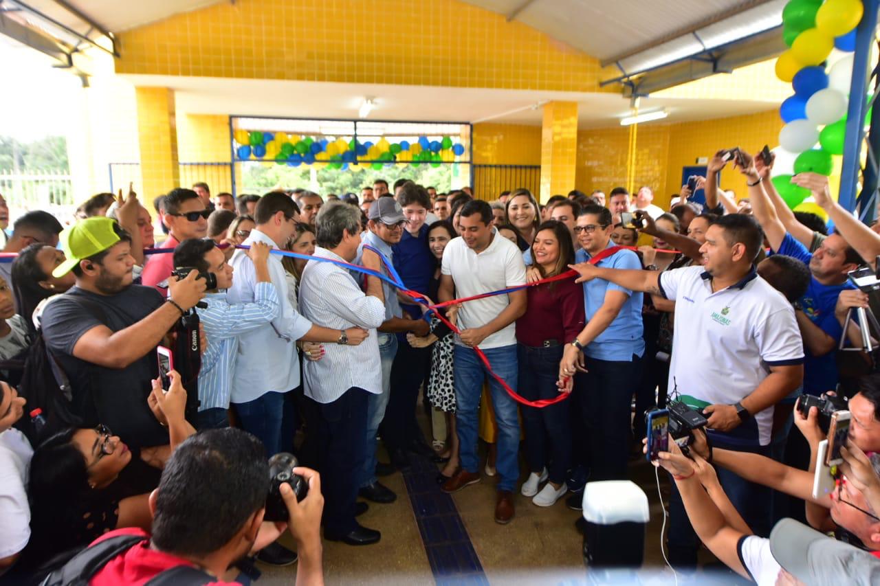 O governador do Amazonas, Wilson Lima, inaugurou, nesta sexta-feira (07/02), o Centro de Educação de Tempo Integral (Ceti) Maria Eva dos Santos, em Presidente Figueiredo (a 100 quilômetros de Manaus), com capacidade para 960 alunos. No município, o governador também anunciou que o Governo vai retomar a distribuição gratuita de fardamento e material escolar para alunos da rede estadual, além de obras no sistema viário da cidade.